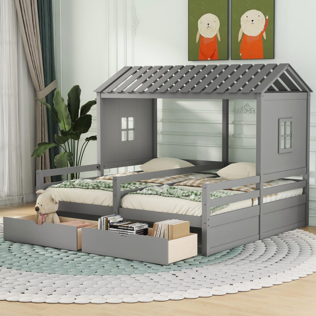 SOFTSEA Double Beds for Kids Twin and Twin Platform Beds
